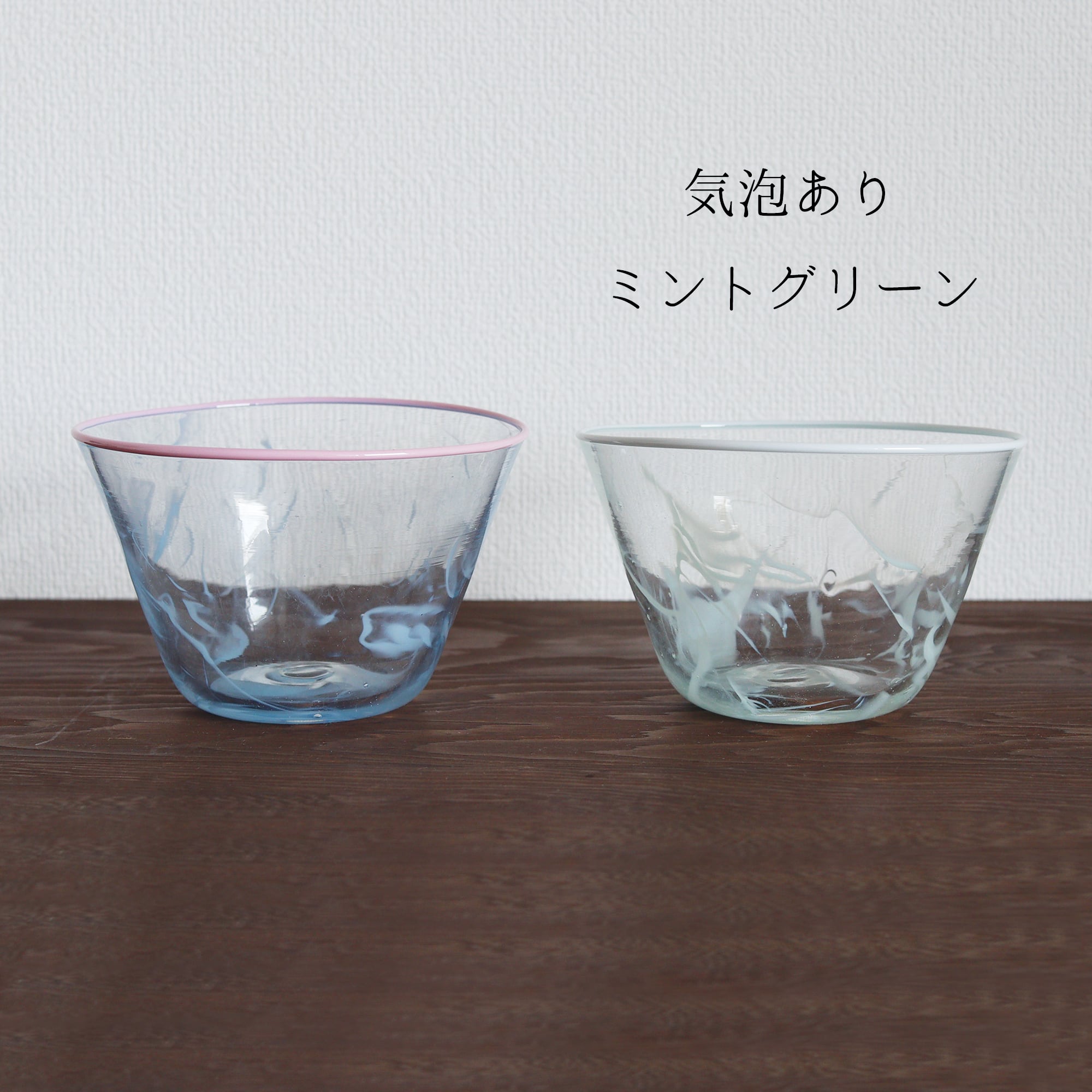 •細かな気泡、鉄分やガラス原料の溶け残り、色の濃淡が見られる場合がございます。これらは手仕事ならではの風合いとしてご理解いただけますと幸いです。