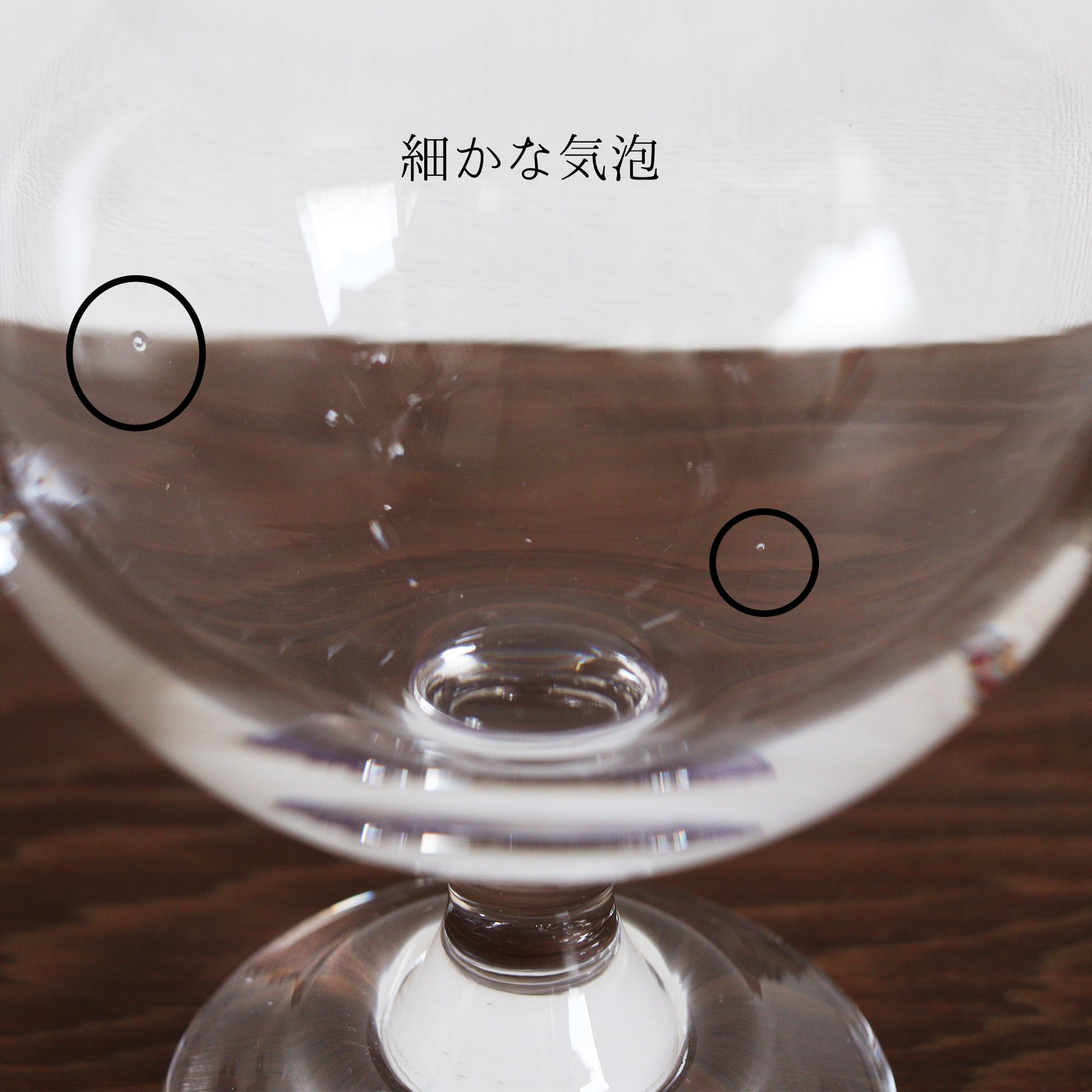 全体的に細かな気泡があります。ガラスを溶かす窯に生じる気泡で、風合いとしてお楽しみいただけますと幸いです。
